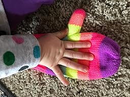 I looked FOREVER to find a hat and gloves set that my 15 month old could wear. Head circumference of 47cm. Something that was comfortable but not too bulky. Something warm and durable but cute! I was worried about the fit because everything seemed to be for kiddos age 2 and up OR for infants around 6 months but this set labeled SMALL/(12-24months) is just about perfect! The hat is not too big, not too snug. The gloves are a bit roomie but not an issue. Growing room but in a good way. Warm fleece lining and a durable knit outer layer for both the hat and gloves. Many toddler winter hats have a chin strap with Velcro, this one does not but my daughter prefers it that way. The gloves are hard to put on because she has to find the thumb but it’s not that big of a deal. We haven’t washed them yet but there’s no doubt that they will hold up. If you plan on folding the gloves inside one another when not in use, that’s too hard to do. We will be back!