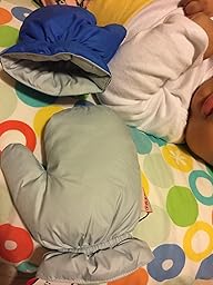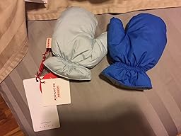 Adorable mittens! I ordered the gloves thinking I would be using the blue side more on the baby, but when I received the item, I am thinking, I will be using both sides equally as much, so glad that they’re reversible. The gloves are made of down feathers and is extremely warm. Although they are a little big on my baby, he will eventually grow into them.