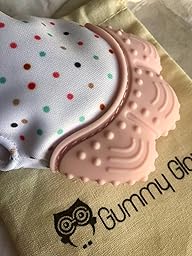 The Gummy Glove is made of premium materials: the 100% cotton lining is a soft and natural material that absorbs moisture and allows for maximum breathability. A textured food-grade silicon surface provides soothing relief for your baby’s gums with multiple soft bumps and ridges.