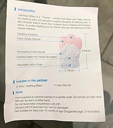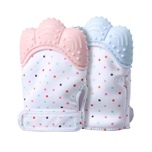 - 【Relieve Teething Paint】This cute teether glove features multiple textured surfaces for comforting and soothing your little one’s gums while preventing him from scratching himself and saliva irritating skin