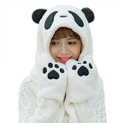 - Multifunction,3 in 1 combo cartoon hat,cute panda hat with earmuffs,long animal paws as a protective scarf around your neck and mittens paws asa a pocket to keep you warm, you should not carry other scarf or mittens,very convenient for you