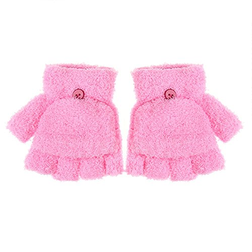Fingerless Gloves,Child Winter Gloves,Flip Top Gloves,Convertible Gloves with Mitten Cover By Cydnlive,Coral Velvet,4 Colors(Pink)