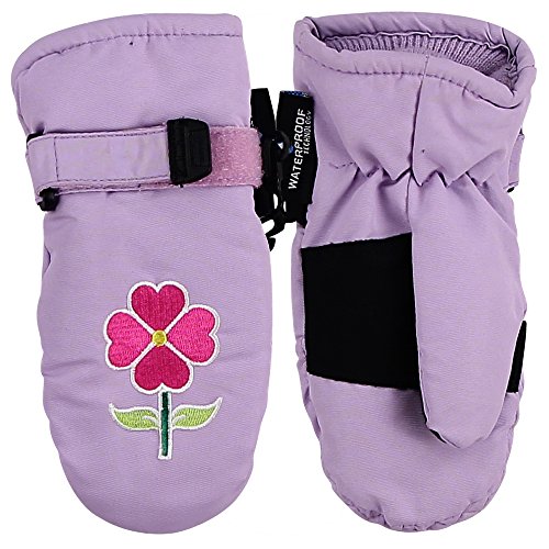 Toddler girl’s embroidered mittens. Available in 4 colors to match the little ones outfit. Velcro tab for easy on and off. Thinsulate lined and waterproof to ensure her hands stay warm while playing outdoors in the snow or cold winter days.
