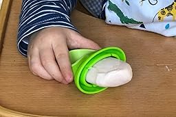 Die Menge der Förmchen ist ausreichend für das Alter, die Halterung hat sozusagen eine Mulde falls etwas runter Tropft und der Griff ist perfekt für die kleinen Hände.
