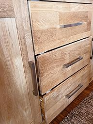 Magnetschloss seit einigen Wochen im Einsatz (geölte Holzoberfläche), auch bei Schubkästen ohne Zwischenböden einsetzbar (Einfach an Unter-/Oberkante Schubblende montieren)