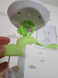 - Per Fernbedienung lassen sich die Bewegungen des Mobiles, die Lichtershow aus Sternen und bis zu 30 Minuten Audioeinstellungen