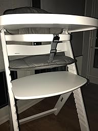 Den Esstisch kann man über äuÃerst praktisch gemachte federnden (echte Federn, kein biegendes Plastik!) Ausklinkhaken aus der Führung des Stuhles nehmen. (Kindersicher)