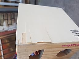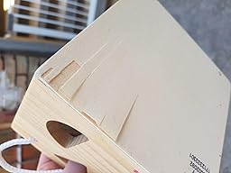 – die Öffnungen am Würfel sind wohl gestanzt, aber nicht nachbehandelt; d.h. die Kanten sind sehr hart (möchte man so einem Kleinkind nicht zum Spielen geben) – möglicherweise könnten sie bei längerem Gebrauch splittern; ich habe sie mit Schleifpapier abgerundet