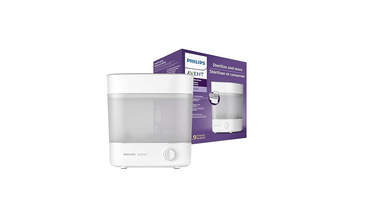 - Einfache Handhabung: Der Sterilisator funktioniert elektrisch und ermöglicht eine unkomplizierte Nutzung. Einfach die Flaschen und Zubehörteile einlegen, Wasser hinzufügen und den Sterilisator einschalten.