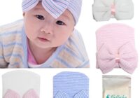 Gellwhu 5pcs Infant Baby Girls Striped Nursery Newborn Hospital Hat Cap with Big Bow
