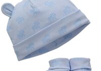 Goumikids – Organic Mitts & Booties Bundle, Soft Stay On Scratch Proof Mittens and Adjustable Baby Booties (Mod/Blue, 3-6 Months)