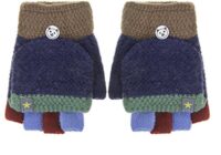Hongxin Convertible Cotton Knitted Gloves For Kids 2-6 Years Fingerless Flap Warm Winter Mitten Multicolor (Dark Blue)
