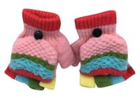 Hongxin Convertible Cotton Knitted Gloves For Kids 2-6 Years Fingerless Flap Warm Winter Mitten Multicolor (Pink)