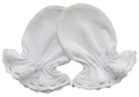 100% Cotton Jersey Newborn Baby Handmade Anti Scratch Mittens Christening Cotton Lace 1 Pair Color White (0-3 Months, White Star)