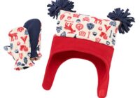 Bundle him up with this adorable toddler boys’ fleece hat and mittens set by Jumping Beans. This cozy hat features ear flaps, velcro chin strap and frilly poms. Coordinating mittens are cinched at the wrist to keep out the cold. 100% Polyester, machine washable. Size 2T-4T. Toddler boys fleece hat and mittens set by Jumping… Read More »