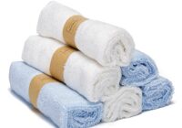 Kimicare Bamboo Baby Washcloths – Premium Soft & Absorbent Towels for Baby Bath – Durable Organic Baby Wipes – Perfect Baby Shower Gift, 10″x10″, 6 Pack, White/Blue