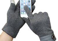 Ikevan Mens Touch Screen Smartphone Gloves Warm Wool Cotton Full Finger Gloves – Solid Color Leather Cuff – Motorcycle Outdoor Driving Sports (Gray)