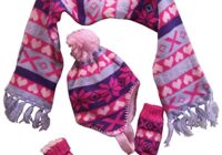 N’Ice Caps TM girls snowflake print jacquard knitted hat/scarf/mitten set. Full Sherpa lining in hat and mittens, scarf is double layered and has fringes. Hard to find product, great quality and design. Colors: pink/purple/fuchsia/lavender. Sizes: one size fits 6-18 months (mitten has no thumb,) one size fits 2-4yrs (mitten has thumb,) one size fits 4-7yrs… Read More »