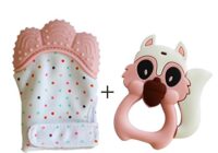 Baby Teething Mitten, Teething Toys for Babies Self-Soothing Pain Relief and Teething Glove BPA FREE 100% Silicone (similar to nipples & pacifiers), and BPA & Phthalates Free (Pink Teether + squirrel)