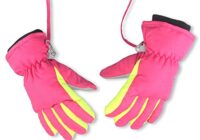 FISOUL Kids Winter Snow Ski Gloves Waterpoof Children Snowboard Gloves with Adjustable Wrist Strap (M, Peach pink)